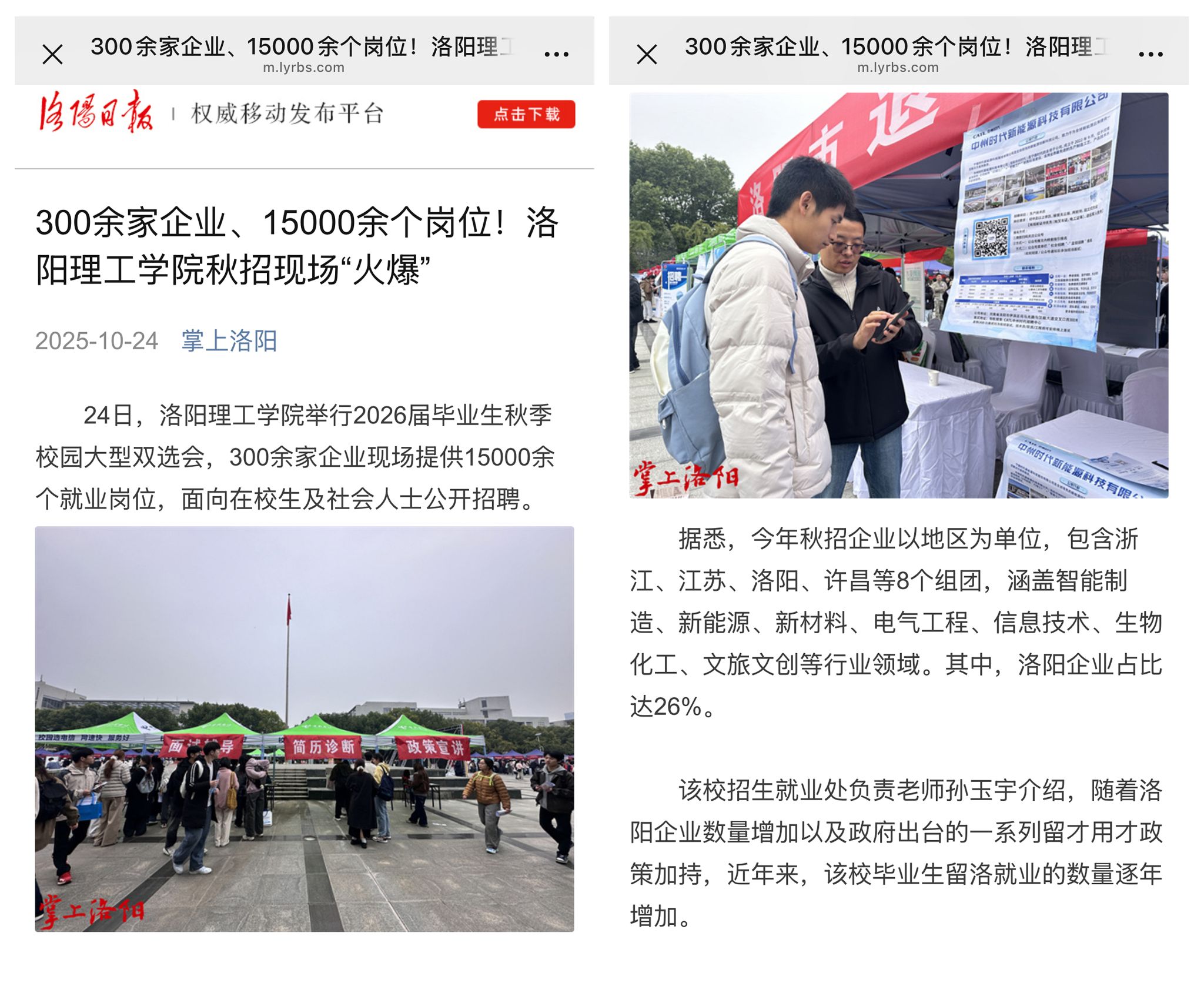《洛阳日报》掌上洛阳移动客户端,2025年10月24日,《300余家企业、15000余个岗位!
