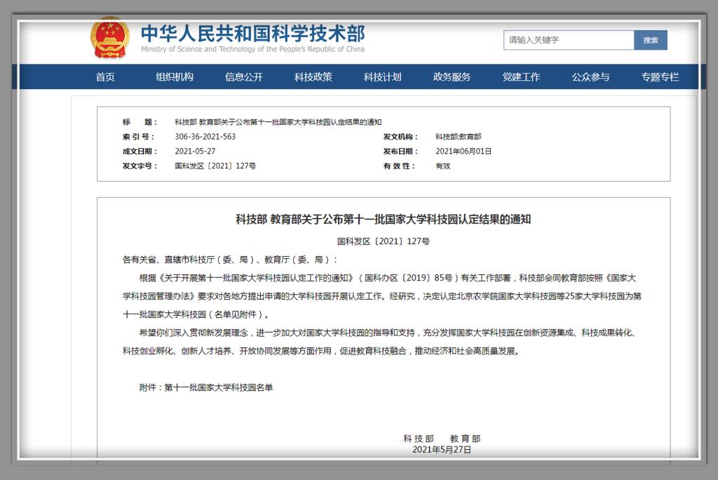 6月1日,科技部、教育部联合公布第十一批国家大学科技园认定结果的通知,我校成功获批国家大学科技园。